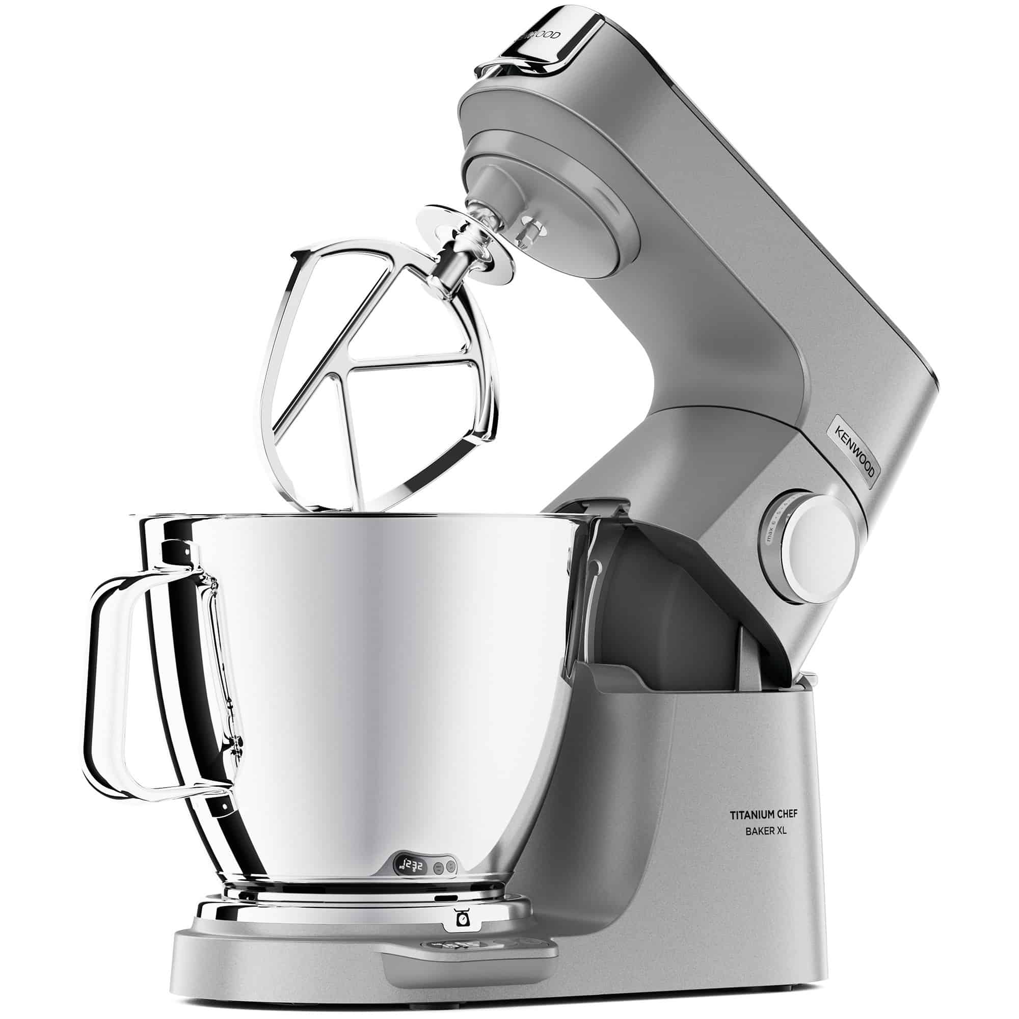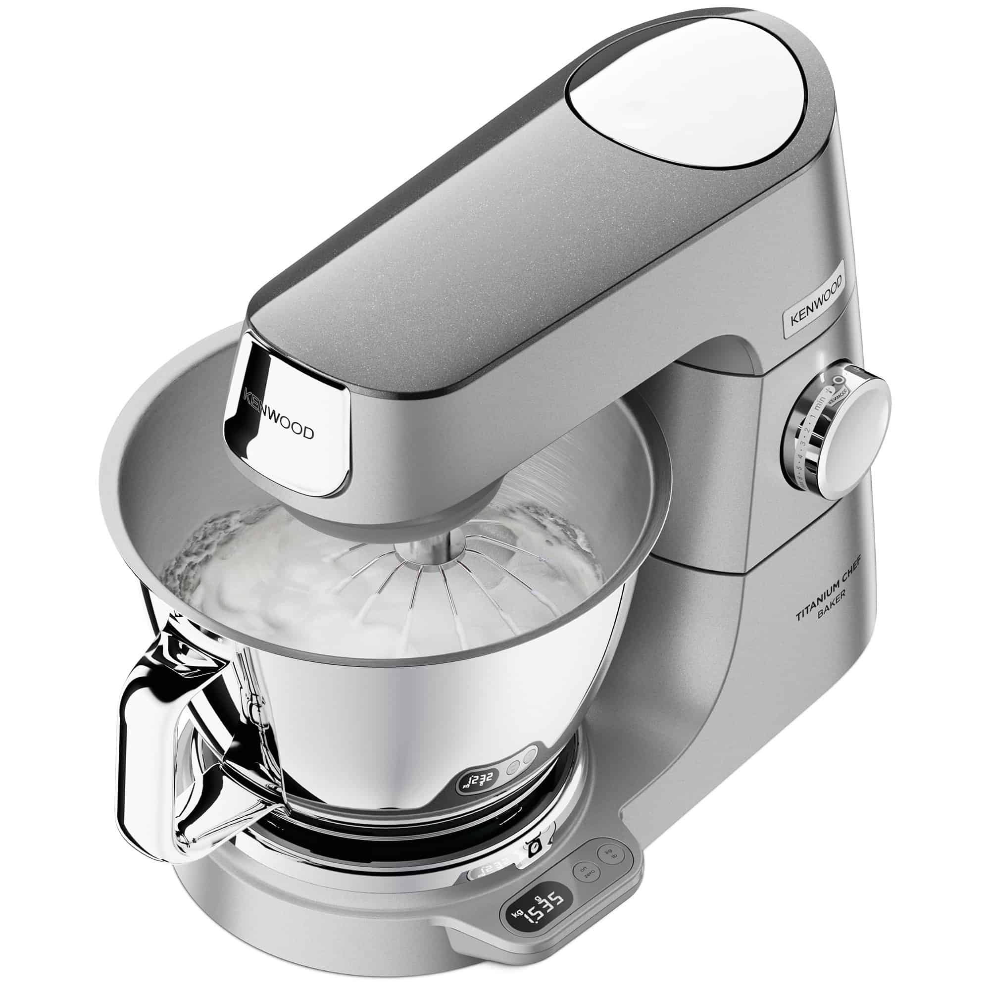 Kenwood Titanium Chef Baker XL KVL85004SI udmærker sig ved sin exceptionelle kapacitet og særlige funktioner. Med 1200 W, indbygget vægt, intelligent strømstyring og 2 skåle m.m. er denne model en førsteklasses køkkenmaskine, som meget få kan måle sig med.