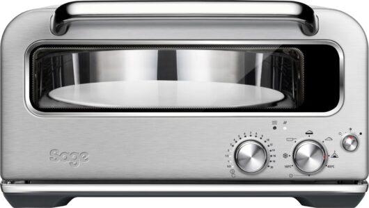 The Smart Oven Pizzaiolo minder ifølge Gastromand.dk om en ”flad mikroovn” og har Sages ikoniske rustfrie stållook. Den vil fylde lidt på køkkenbordet, men er til gengæld flot at se på. Ovnen er udstyret med tre varmeelementer: en undervarme, en overvarme og en blæser, der imiterer ventilationen fra en autentisk stenovn.