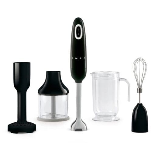 Der medfølger fire forskellige typer tilbehør til Smeg HBF02: en blenderkande, et piskeris, en minihakker og en grøntsagsmoser – alle i Smegs ikoniske retrodesign og i din valgte farve. Den høje pris for Smegs stavblendersæt kan på den måde opvejes af, at du ikke kun får en stavblender, men faktisk kan udføre rigtig mange forskellige opgaver med det samme redskab. Det er desuden muligt at tilkøbe en foodprocessor til din stavblender eller en stavblenderholder. På den måde kan du udvide tilbehøret alt efter, hvad du har brug for – eller hvornår det passer ind i budgettet.